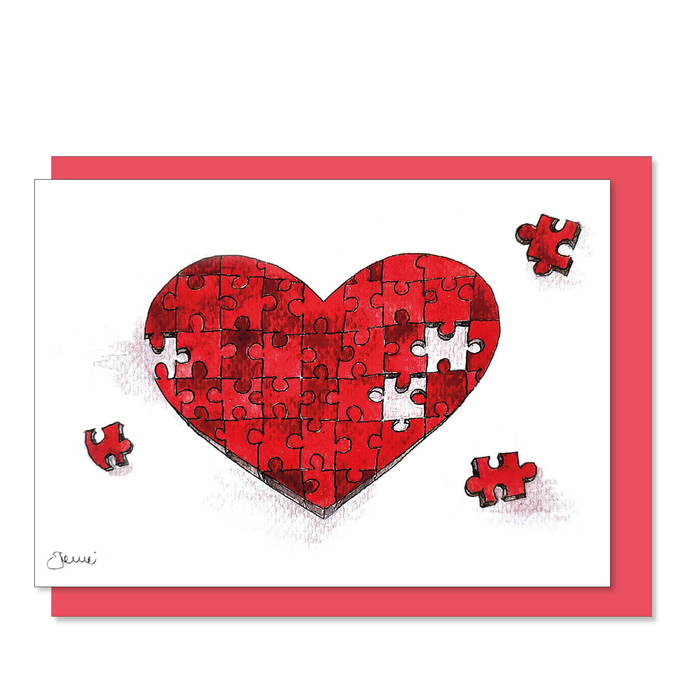 Taitettu kortti. Kortti on painettu korkealaatuiselle 300 g valkoiselle korttikartongille. Koko on taitettuna A6 (148 x 105 mm). Kuvapuoli on kevyesti kiillotettu ja sisäpuoli matta, ei tekstiä. Takasivulla kuvan ja taiteilijan nimi sekä Hartikka Cards & Posters -logo. Mukana värillinen kirjekuori.