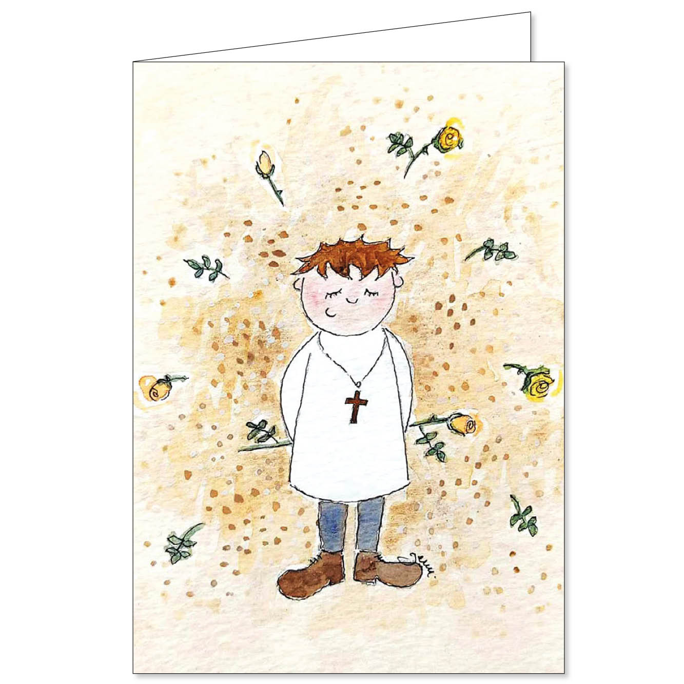 Taitettu kortti. Kortti on painettu korkealaatuiselle 300 g valkoiselle korttikartongille. Koko on taitettuna A6 (148 x 105 mm). Kuvapuoli on kevyesti kiillotettu ja sisäpuoli matta, ei tekstiä. Takasivulla kuvan ja taiteilijan nimi sekä Hartikka Cards & Posters -logo.